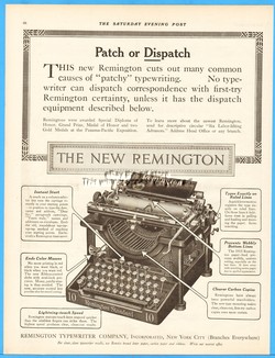 1915 Remington Typewriter Co New York Standard Model No 10 Patch or Dispatch Ad