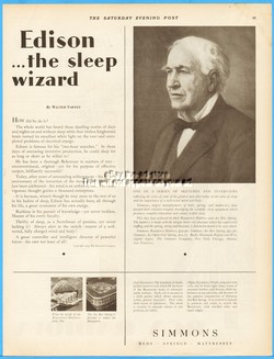 1929 Thomas Edison Sketch Walter Varney Interview Simmons Beautyrest Mattress Ad