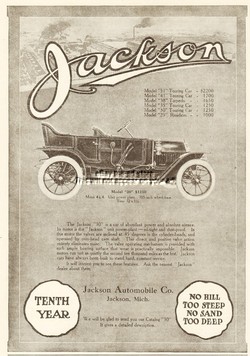 1911 Jackson Automobile Company Michigan Antique Model 30 Touring Car $1250 Ad