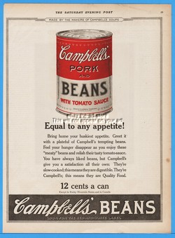 1922 Campbell's Pork & Beans EQUAL 12¢ Antique Kitchen Decor Vintage Magazine Ad