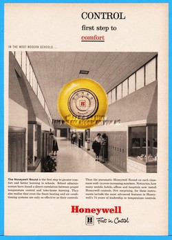1959 Honeywell Control Most Modern Schools Round Thermostat Print Ad