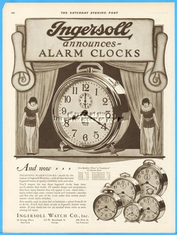 1927 Ingersoll Watch Co Ad Radiolite Alarm Clocks Five Models Luminous Dial