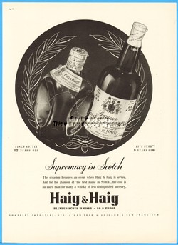1937 Haig & Haig Scotch Whisky Supremacy Pinch Bottle Five Star Vintage Paper Ad