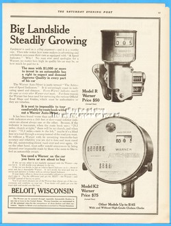1912 Warner Instrument Co Beloit WI Auto-Meter Speedometer Model R & K2 Vtg Ad