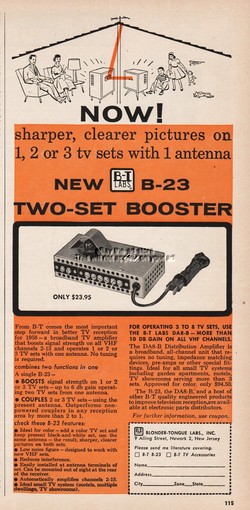 1958 Blonder Tongue Labs Newark NJ B-23 Television TV Antenna Booster Print Ad