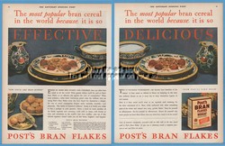 1929 Post Bran Flakes Cereal Battle Creek MI breakfast 2 pg kitchen decor Ad