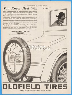 1920 Barney Oldfield Tire Co Cleveland Ohio Antique Car You Knew He'd Win Ad
