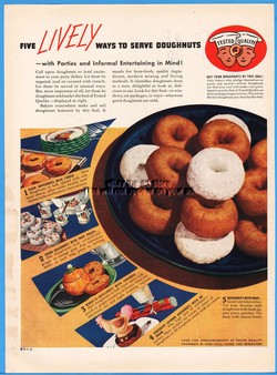 1938 Doughnuts Seal of Tested Quality Five Lively Ways 30s Kitchen Wall Decor Ad