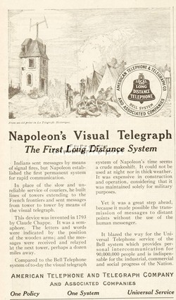 1912 American Telephone Telegraph AT&T Ad Bell Phone Napoleon Claude Chappe
