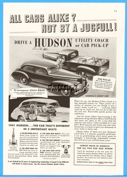 1941 Hudson Utility Coach Coupe & Cab Pickup Truck Original WWII Era Print Ad