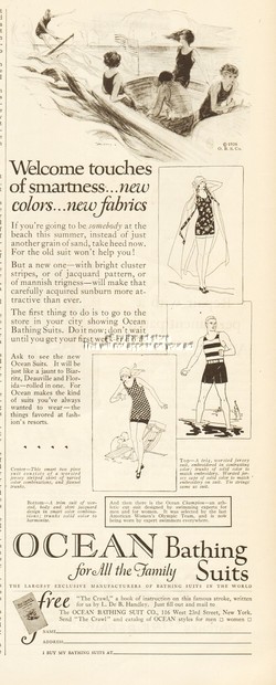 1926 Ocean Bathing Suits New York Women's Mens Swimsuits 1920s Beach Boating Ad