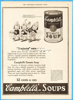 1921 Campbell's Tomato Soup Kids 3 Minute Men Prep 1920's Kitchen Décor Art Ad