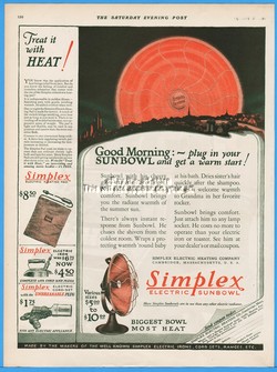 1924 Simplex Electric Heating Cambridge MA Sunbowl Heater Radiator Print Ad