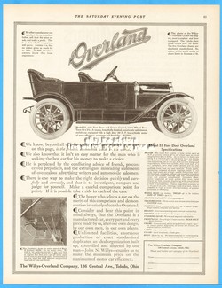 1911 Willys Overland Model 51 Fore Door Car Toledo OH Antique Automobile Ad