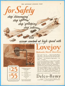 1927 Delco Remy Ad Anderson IN Lovejoy Shock Absorbers Reo Flying Cloud LaSalle