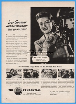 1943 Prudential Life Insurance Newark NJ Woman War Worker Drill Press WWII Ad