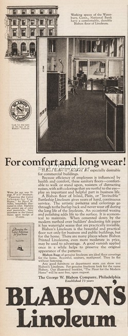 1924 George W Blabon Linoleum Waterbury CT National Bank Interior View Floor Ad