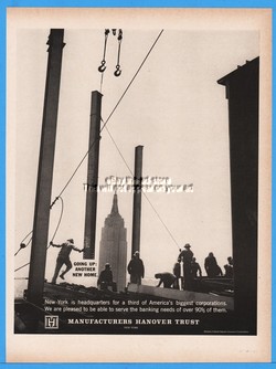 1963 Manufacturers Hanover Trust NYC NY Skyscraper Construction Steelworkers Ad