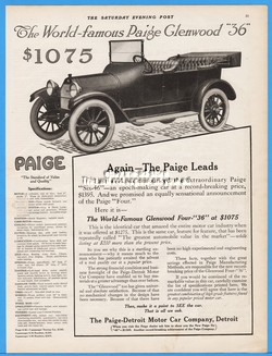 1915 Paige Glenwood 36 Detroit Motor Car MI Open Folding Top Vintage Print Ad
