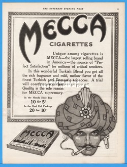 1915 Mecca Cigarettes Pack American Tobacco Co Smoking Turkish Turban Ad