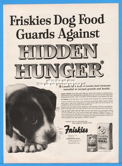 1954 Friskies Dog Food Canned Dry Little Puppy HIDDEN HUNGER Print Ad