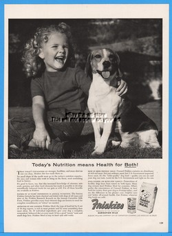 1954 Friskies Dog Food Canned Dry Curly Hair Girl With Beagle Print Ad