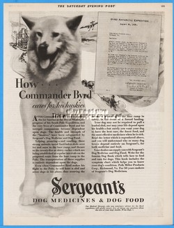 1929 Sergeants Dog Medicine Food Commander Byrd South Pole Huskies Care Ad