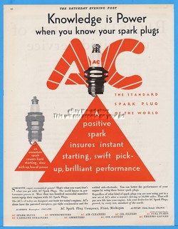1929 AC Spark Plug Co Flint MI Knowledge Is Power Colorful Print Ad