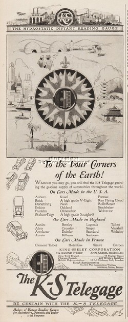 1928 King Seeley KS Telegage Ad Hydrostatic Dist Read Gauge 4 Corners Of Earth