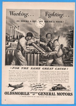 1942 Oldsmobile Plane Tank WII Battle Soldier Factory Bomb Bullet Art Ad
