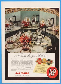 1950 A&P Grocery Stores Eight OClock Coffee Beautiful Silver Service Photo Ad