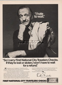 1976 David Niven First National City Travelers Checks I Hate to Wait Photo Ad