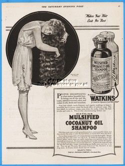 1920 Watkins Mulsified Cocoanut Oil Shampoo Cleveland OH Bathroom Art Decor Ad