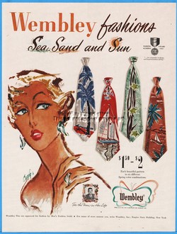1951 Wembley Neckwear Neckties Sea Sand and Sun Ties Vintage Men's Clothing Ad
