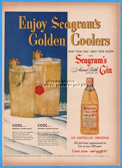 1950 Seagram Ancient Bottle Gin Golden Rickey Collins Cooler Cocktail recipe ad