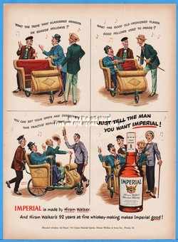1950 Imperial Hiram Walker's Whiskey Peoria IL wicker boardwalk push cart ad