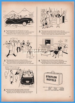 1950 Hotel Statler Touring Ted and Family Tony Barlow art vintage magazine ad