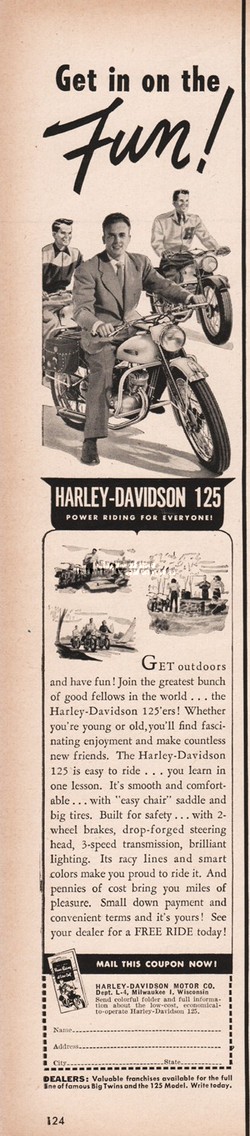 1950 Harley Davidson Motor Co Milwaukee WI 125 motorcycle magazine print ad