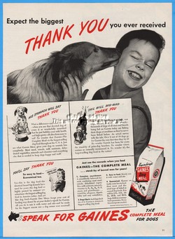 1944 Gaines Dog Food Sherburne NY Collie Biggest Thank You Dalmatian Puppy Ad