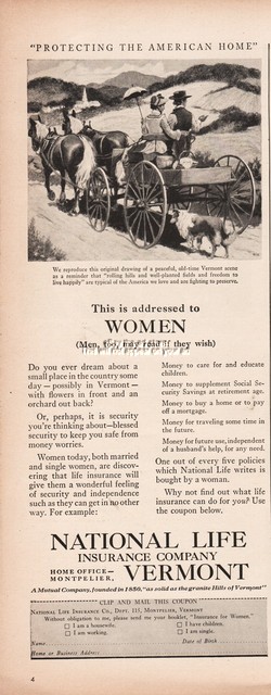 1944 National Life Insurance Montpelier VT Buckboard Wagon Live Happily Ad
