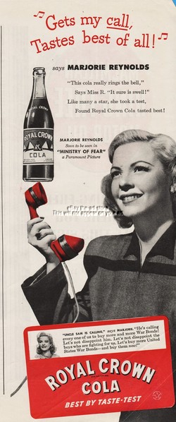 1944 Royal Crown RC Cola Marjorie Reynolds Ministry of Fear Movie Promo WWII Ad