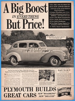 1939 Plymouth DeLuxe Touring Sedan Chrysler Corp Detroit MI 1938 Magazine Car Ad
