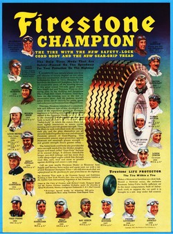 1939 Firestone Tire Indianapolis 500 21 Champion Race Car Drivers AWESOME Ad