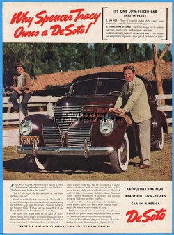 1939 DeSoto Spencer Tracy Photo Car De Soto Chrysler Vintage Print Ad