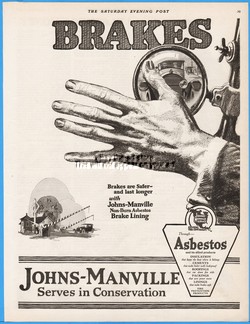 1920 Johns Manville Asbestos Automobile Brake Linings Garage Shop Print Ad
