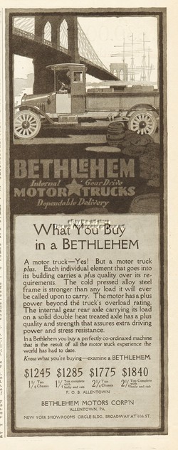 1917 Bethlehem Motors Corp Allentown Pennsylvania Antique Delivery Truck Ad