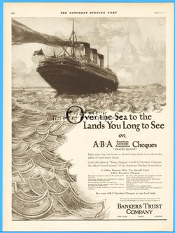 1926 Bankers Trust Co Traveler's Cheques Ocean Liner Steamship Over the Sea Ad