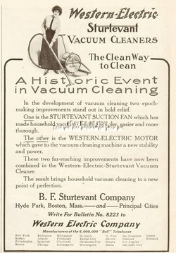 1912 B F Sturtevant Co Boston MA Antique Vacuum Cleaner Western Electric Ad