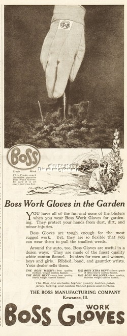 1921 Boss Work Gloves Kewanee Illinois In the Garden Vintage 1920's Print Ad