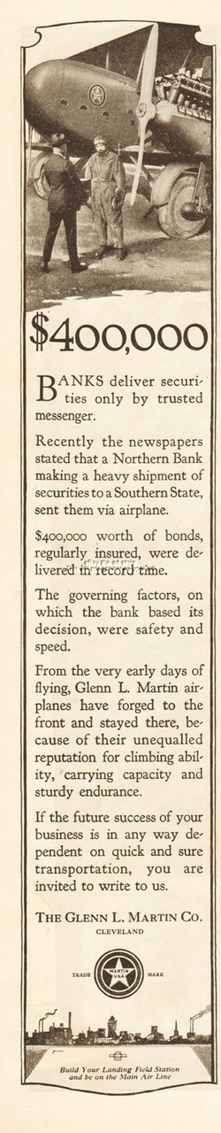 1921 Glenn L Martin Co Cleveland Ohio Antique 1920's Airplane Biplane Photo Ad